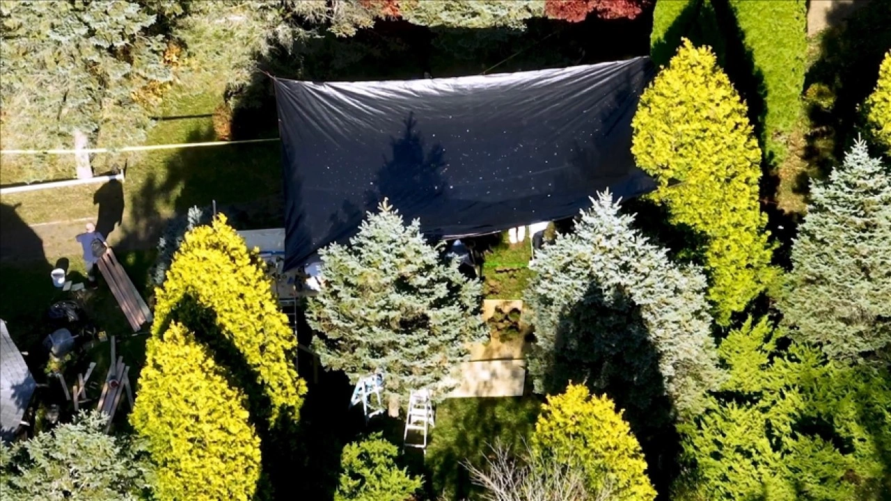 Anadolu Ajansının (AA) edindiği hava görüntülerinde, örgüt üyelerinin çiftliğin bahçesindeki bir noktayı kürekle kazdığı görülüyor. Çukurun kazıldığı alana vinç ve merdiven getirildiği görüntülere yansıdı. Örgüt üyeleri mezarı kazarken, basın mensuplarının havadan görüntü almasını engellemek için alanın üzerine siyah branda çekti. Çukurun etrafına da sarı şerit çekildi.