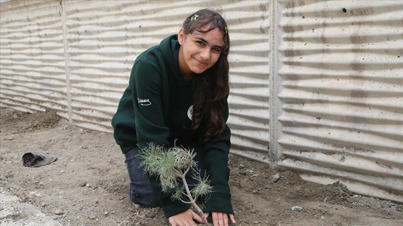 ????Öğretmenlerinin öncülüğünde çam, defne, limon ve mandalina fidanlarını toprakla buluşturan öğrenciler, eğitimlerini yerinde deneyimleme şansı buluyor.