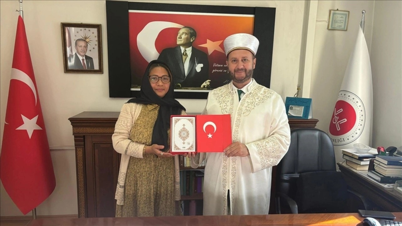 Çörekçi, mutlu ve duygusal bir ana şahitlik edildiğini belirterek, "Sevinç gözyaşları içinde kelimeişehadet getirerek Müslüman olan Bethzaida Mojar Kondo, Beyza ismini aldı." dedi.