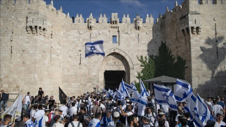 "Bayrak yürüyüşü"nde on binlerce Yahudi yerleşimci, Filistinlilerin yoğunlukta yaşadığı Doğu Kudüs'ün Eski Şehir bölgesinden geçiyor.