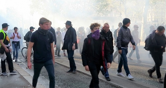 Paris'te 6 işçi sendikasının organize ettiği hükümetin sosyal politikalarını protesto gösterisine, yaklaşık 35 bin kişinin katıldığı belirtildi. Gösteri güzergahında polis sıkı güvenlik önlemleri alırken, kırma dökme ve yağmalama olaylarına karşı bazı cadde ve sokaklar kapatıldı. Yüzleri maskeli bazı öğrencilerin polise taş atmaları nedeniyle gergin anlar yaşandı.
