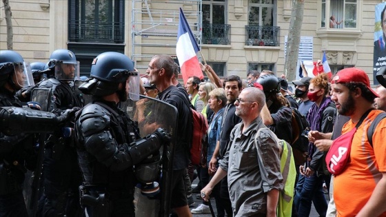 Paris'te birkaç noktada düzenlenen gösterilerden Wagram Meydanı'nda başlayan protestoda, polis güvenlik çemberine aldı ve metrolardan çıkanların gösteriye katılmasına izin vermedi.