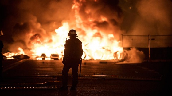 Champs-Elysees ve çevresindeki caddelerde alevler yükseldi.