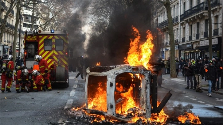 Paris'te polislerin Concorde Meydan'ından tahliye ettiği göstericiler, dağıldıkları ara sokaklarda çöp, araç ve bazı kamu mallarını ateşe vermişti.