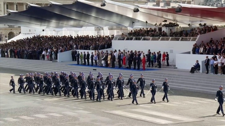 Fransız Milli Marşı La Marseillaise'in okunduğu törende, Hindistanlı askerler de resmigeçitte hazır bulundu ve Rafale tipi savaş uçakları başkent semalarında uçtu.