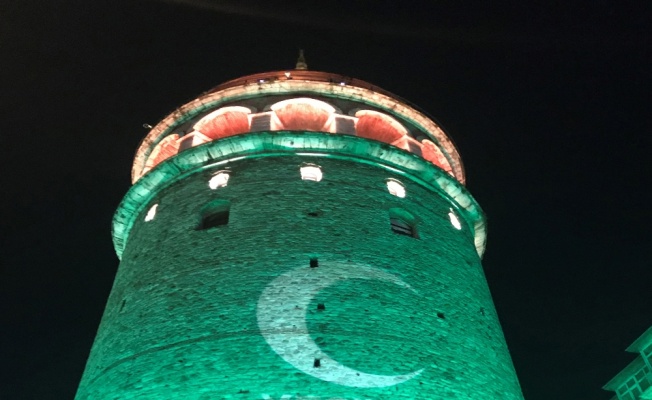 İstanbul’un simge tarihi eserlerinden Galata Kulesi, Yeşilay Haftası nedeniyle yeşile büründü.