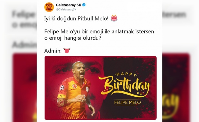 Galatasaray, eski futbolcusu Brezilyalı Felipe Melo’nun doğum gününü unutmadı. Sarı-kırmızılıların sosyal medya hesabından yapılan paylaşımda, "İyi ki doğdun Pitbull Melo!" denildi. Paylaşımda ayrıca takipçilere, ’Felipe Melo’yu bir emoji ile anlatmak istersen o emoji hangisi olurdu?’ soruldu.