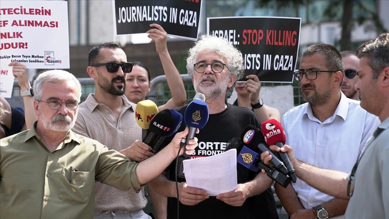 Grup adına hazırlanan basın açıklamasını okuyan Sınır Tanımayan Gazeteciler Türkiye Temsilcisi Erol Önderoğlu, uluslararası savaş hukuku ve insani hukukun İsrail devletince çiğnenmesini, bugüne kadar 200'ü aşkın gazetecinin öldürülmesini kınadıklarını söyledi.
