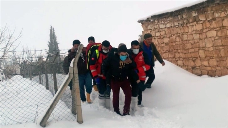 Yoğun kar yağışı nedeniyle yolu kapalı mahalleye gitmesi için UMKE ve 112 Acil Sağlık ekipleri görevlendirildi.