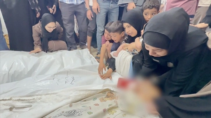 Saldırıda hayatını kaybeden ailenin cenazeleri Aksa Şehitleri Hastanesi'ne getirildi.