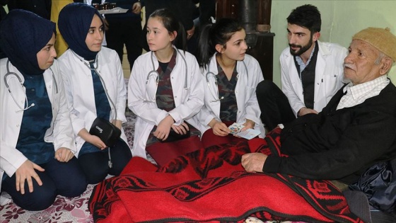 Kış mevsiminin sert geçtiği kentte ev ev dolaşan öğrenciler, sağlık taraması yaptıkları yaşlılardan durumu kötü olanlar için de randevu alarak hastanelere yönlendiriyor.