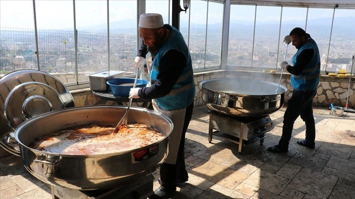 Antakya'daki Habib-i Neccar Sosyal Tesislerinde kurdukları mutfakta günde yaklaşık 1200 kişiye yemek verdiklerini anlatan Abdullah, "Bu bölgeye kurulan çadırlarda yaşayan çok sayıda insan var. Ramazan ayında yemek dağıtıp dağıtamayacağımız konusunda biraz tedirginliğimiz vardı. Durumu gördükten sonra arkadaşlarımızın da bize destek çıkmaları sonucuyla Ramazan Bayramına kadar iftar ve sahurda 15 kişilik bir ekiple yemek vermeye başladık. İftarda 2-3 çeşit yemek veriyoruz. Sahurda da aynı şekilde depremzedelere peynir, zeytin gibi kahvaltılık malzemeler veriyoruz." diye konuştu.