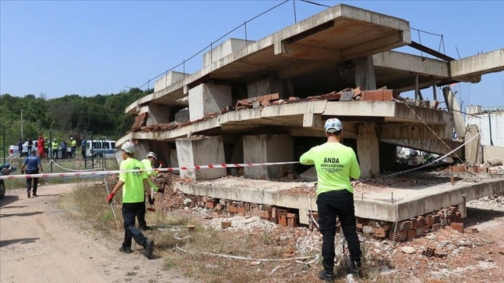 Tatbikat kapsamında Gemlik'te yıkılan binalarda enkazda kalan yaralılar kurtarıldı.