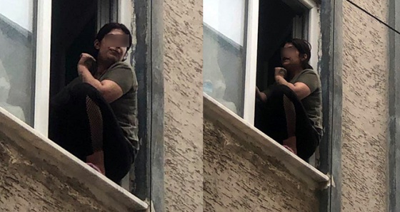 Bursa'nın Gemlik ilçesinde genç bir kadın, evinin camına çıkıp boğazına bıçak dayayarak intihar etmek istedi.