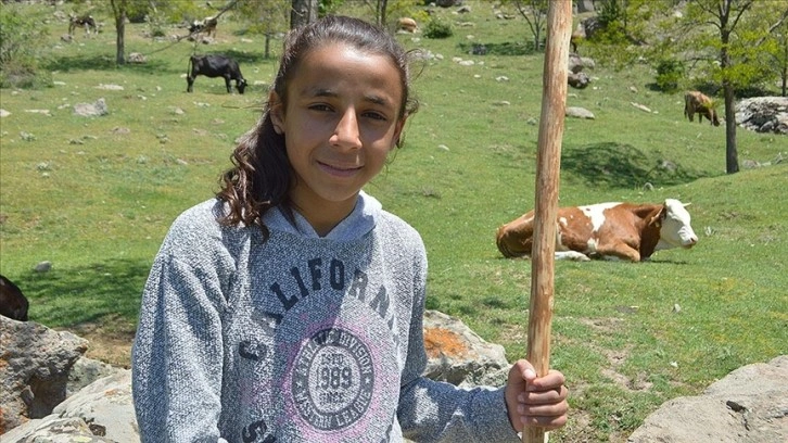 Büyükbaş hayvanlarını köyün yaylalarında otlatan Fatma Yılmaz, hareketli yaşam tarzıyla formunu koruyor.
