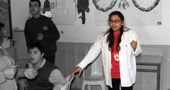 "Yaşlı adam maskesi" takan Coşkun, akıl hastası taklidi yaparak sınıfta öğrencilerle ders işleyen Çokyaşar’ın yanına gitti.
