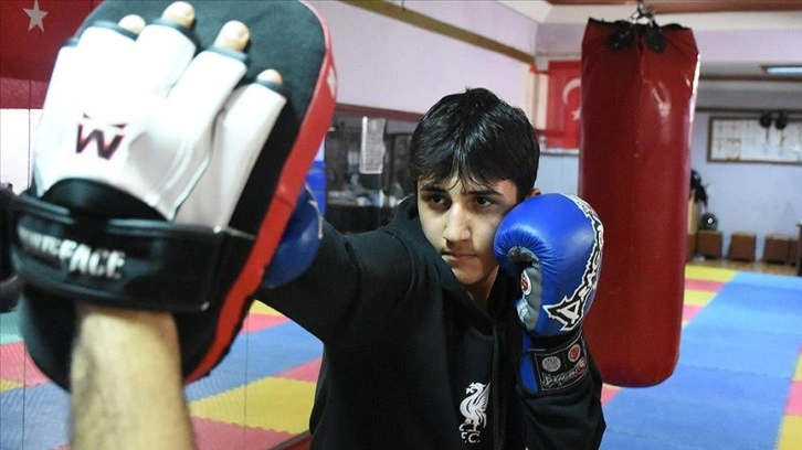 Genç sporcu, haziran ayında düzenlenecek boks ve muaythai Türkiye Şampiyonaları'nda altın madalya almayı hedefliyor .
