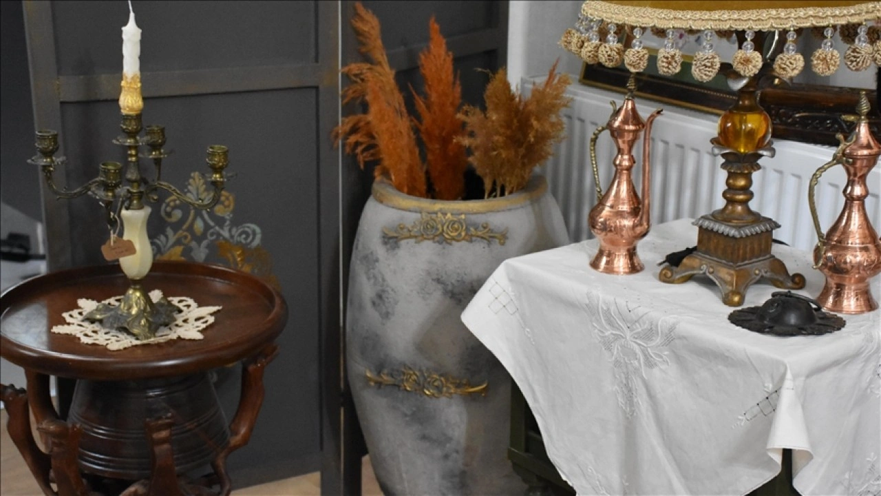 Gezdiği şehirlerden aldığı eşyaları oğlu ile açtığı kafede sergiliyor