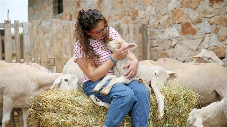 "İle De France cinsi koyun yetiştiriciliği yapıyorum. Hayvanları çok severim ama bakımı bana göre değildi. Koyunlarım gelene kadar 'Ben yapamam.' diyordum ama şimdi her şeyleriyle ilgileniyorum. Onların doğum süreçlerine dahil oluyorum. Annesini emmeyen oluyor, kucağımızda biberonla besliyoruz. Çocuklarım da ilgileniyorlar. Kuzularımıza isim veriyorlar. Sabah yemlerini veriyoruz, genel bakımlarını akşam yapıyoruz. Hasta olanlar varsa ilaçlarını veriyorum, göz damlalarını damlatıyorum. Hastalandıklarında çok üzülüyoruz. Hepsi kendi çocuğumuz gibi."