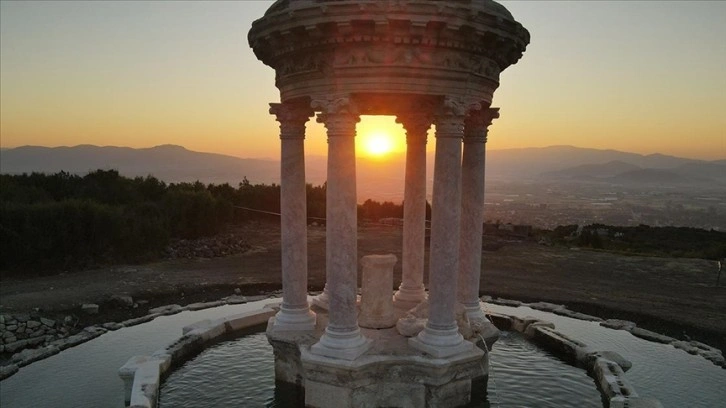 Kentteki devasa büyüklükteki Roma döneminin nitelikli mimari eserleri, renkli mermerlerden oluşan Medusa mozaiği ve 2 bin yıllık anıtsal çeşme, güneşin doğuşuyla görsel şölen sundu.