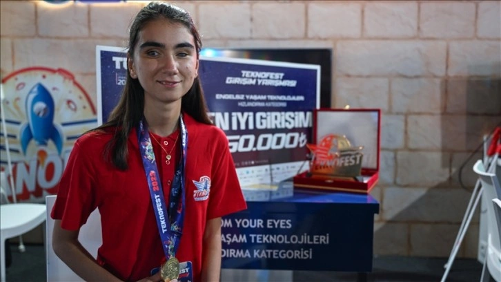 Yapay zeka teknolojilerini kullanarak görme engellilerin hayatını kolaylaştırmak üzere yaptığı çalışmalarla daha önce de çeşitli ödüller kazanan 21 yaşındaki Zülal Tannur'un arkadaşlarıyla geliştirdiği "From Your Eyes" projesi TEKNOFEST İzmir'de birinciliğe layık görüldü.