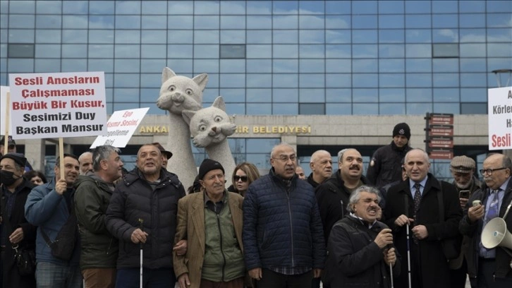 Aralarında Altınokta Körler Derneği, Türkiye Görme Engelliler Derneğinin de olduğu çeşitli sivil toplum kuruluşu üyeleri, Ankara Büyükşehir Belediyesi önünde toplandı.