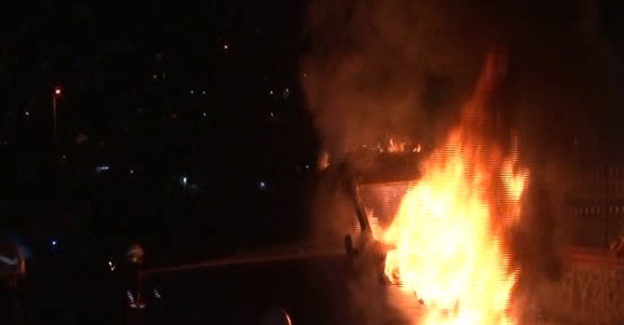Alınan bilgiye göre, Hacıahmet Mahallesi’nde toplanan kalabalık bir grup, bölücü terör örgütü propagandasıyla korsan gösteri düzenledi. Polisin dağılın uyarılarına rağmen eylemde ısrar eden göstericiler önce polise ardından da park halindeki bir minibüse molotoflarla saldırdı. Atılan Molotofların denk geldiği İSKİ’ye ait Kanal Görüntüleme Aracı bir anda alev aldı. İhbar üzerine olay yerine gelen itfaiye ekipleri, kısa sürede alevlere müdahale etti. Alevler kontrol altına alınırken araçta büyük çapta maddi hasar oluştu.