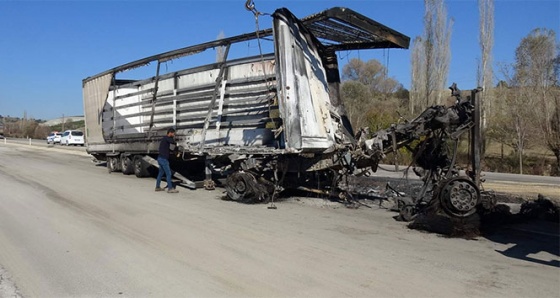 Afyonkarahisar-Uşak karayolunun 60. kilometresinde meydana gelen ve 3 kişinin hayatını kaybettiği feci kazanın ardından incelemeler tamamlanarak araçlar olay yerinden kaldırıldı. Gündüz ortaya çıkan görüntüler kazanın dehşetini de gözler önüne serdi. İki tırın komple yandığının görüldüğü kazada, tır dorselerinin sadece metallerinin kaldığı görüldüğü. Tırların adeta hurda yığının döndüğü kazada çarpışmanın etkisi ile şarampole devrilen tırlardan birinin dorsesindeki kömürlerin de etrafa saçıldığı görüldü. Ekipleri yaptığı incelemelerin ardından yol kenarına çekilen tırlar ardından vinçler ile olay yerinden kaldırıldı.
