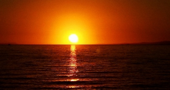 Sonbahardan kalma sıcak bir günün yaşandığı Van akşamında insanlar güneşin batışına tanık olmak için Van Gölü sahiline geliyor.