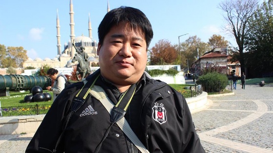 Edirne'de bulunan Güney Koreli gazetecinin Beşiktaş sevgisi vatandaşları şaşırttı.