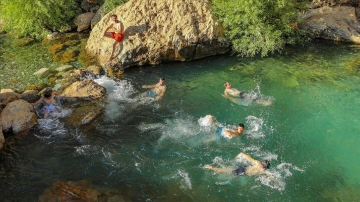 Güneydoğu Anadolu Bölgesi'nde sıcaklığın 40 dereceyi aştığı illerde yaşayan ve "serin" rota arayışında olanların tercih ettiği Sinek Çayı ve Kanyonu, serinlerken doğayla da baş başa kalmak isteyen ziyaretçilere ev sahipliği yapıyor.
