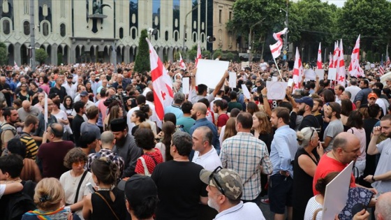 Parlamento Başkanı Irakli Kobakhidze ve bazı yetkilileri istifaya çağıran ve sayısı 10 bini geçen protestocular, parlamentoyu kuşatarak içeri girmeye çalıştı.