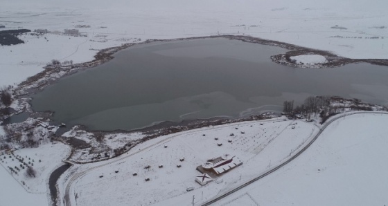 Soğuk havanın etkisini sürdürdüğü Sivas'ta kar yağışı dolayısıyla kent merkezine 39 kilometre uzaklıkta bulunan Hafik ilçesindeki göl kısmen buz tuttu.