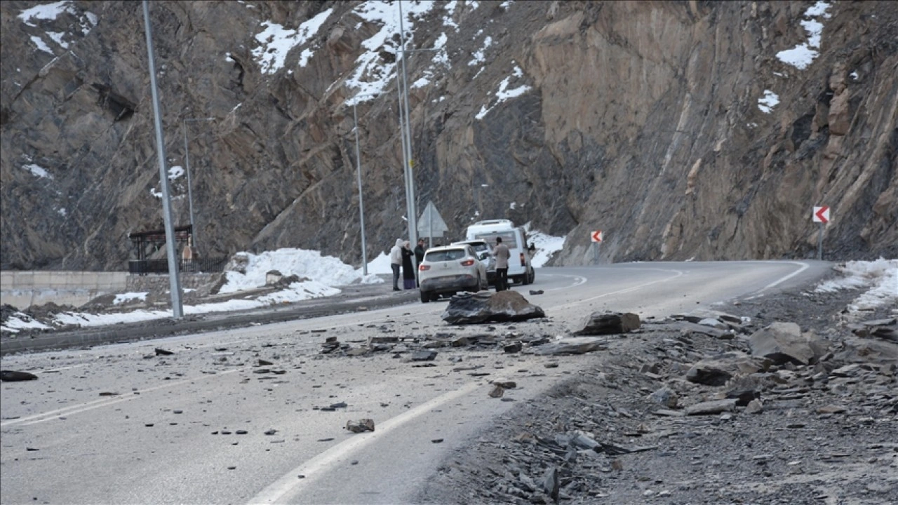 Kısa süreliğine trafiğe kapanan yol, kayaların kaldırılmasının ardından trafiğe açıldı.