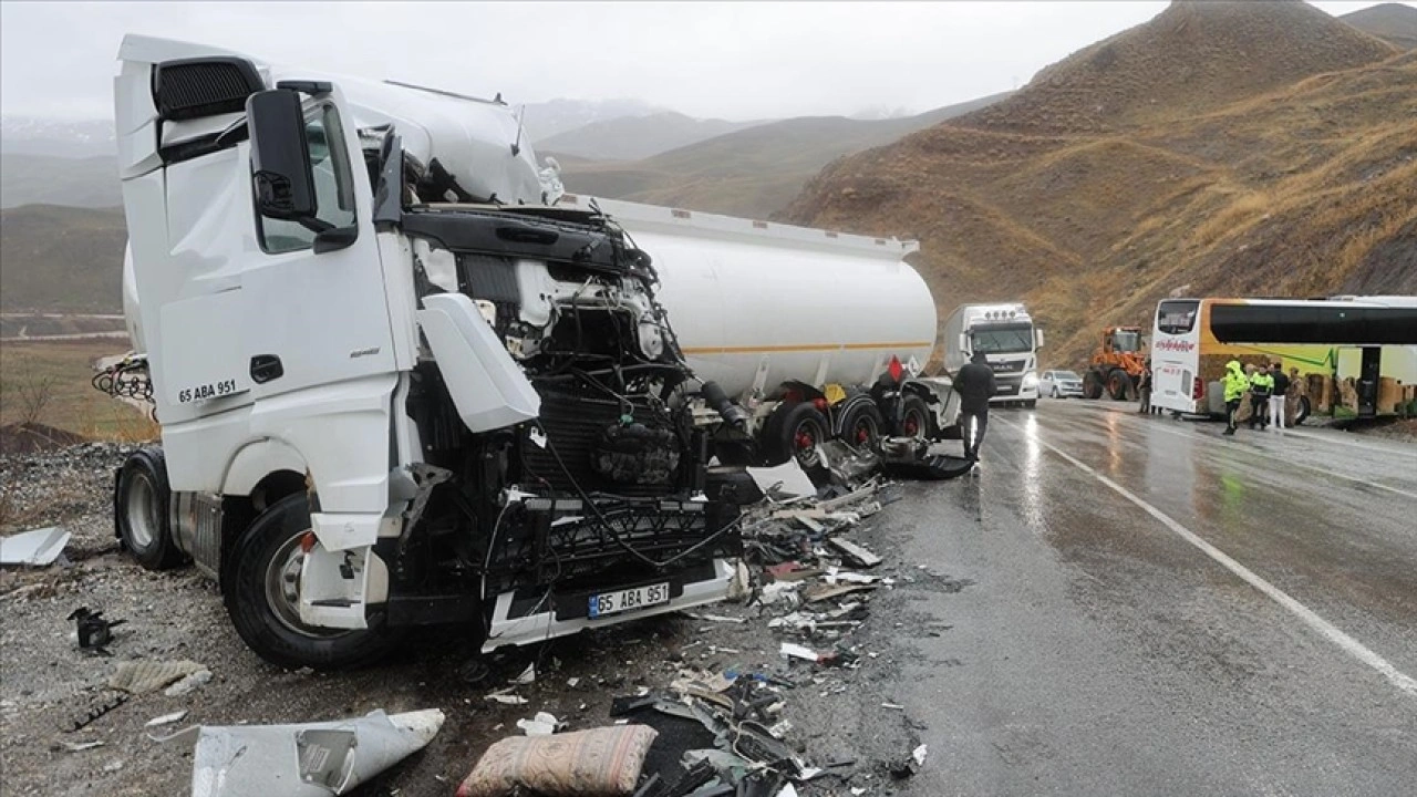 Hakkari-Van kara yolunun Sarıtaş köyü yakınlarında sürücülerinin ismi henüz öğrenilemeyen 34 SD 0721 plakalı otobüs ile 65 ABA 951 plakalı yakıt tankeri çarpıştı.
