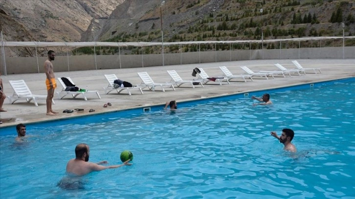 Hakkari-Van kara yolunun Depin mevkisindeki tatil köyü ve yarı olimpik havuz, havaların ısınmasıyla vatandaşların uğrak mekanı oluyor.
