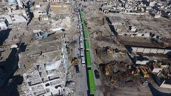Böylece, kuşatma bölgesinden çıkan ilk konvoy, rejim bölgesinde bekleyen yeşil otobüslere ulaşmış oldu.