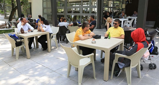 Beton yapılar içerisinde, şehrin yoğunluğundan bunalan vatandaşların nefes alacağı bir alan olarak tasarlanan çay bahçesinde sıcak ve soğuk içeceklerin yanında kahvaltı, tost ve gözleme çeşitleri de bulunuyor.