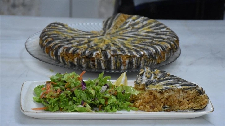 "İç pilavında pirinç, üzüm, soğan, baharatlar, salça gibi ürünleri buluşturuyoruz. Gerçekten süper bir iç pilav oluyor. İç pilavı da kılçıklarını çıkartıp tepsiye dizilen hamsiyle buluşturduğumuz zaman güzel oluyor. Hamsinin temizlemesi ile pişirme aşamasına gelene kadar hemen hemen bir günü alıyor. Mesela dün hamsiyi taze taze aldım. Akşam temizledim, kılçığını aldım ve sabahleyin de pilavıyla buluşturdum."