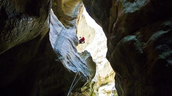 Bilecik'in Yenipazar ilçesinde, ikisi büyük, çok sayıda şelaleyi barındıran yaklaşık 3 kilometre uzunluğundaki Harmankaya Kanyonu'nu dünyaya tanıtmayı amaçlayan Belediye Başkanı, dağcılarla kanyonu geçti.