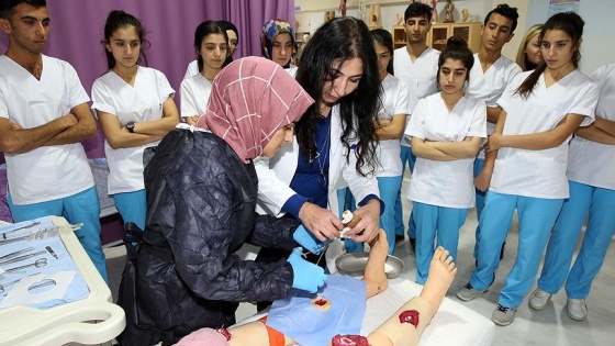 Maketler üzerinde acil hastaya müdahale ve doğum konusunda uygulamalı eğitimlerle bilgilendirilen öğrenciler, mezun olduklarında sağlık kuruluşlarında görev yapmak için tecrübe kazanıyor.