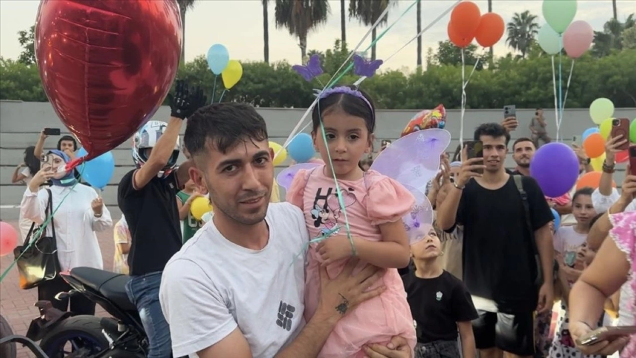 Burada Yağmur'un pasta üflemesinin ardından toplanan vatandaşlar, rengarenk balonları gökyüzüne bıraktı.