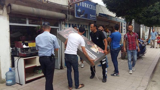Hatay Büyükşehir Belediyesinden yapılan yazılı açıklamada, zabıta ekiplerinin, kent merkezinde bulunan Suriyeli sığınmacıların açtığı iş yerlerindeki tabelaların kaldırılmasına yönelik çalışma başlattığı belirtildi.