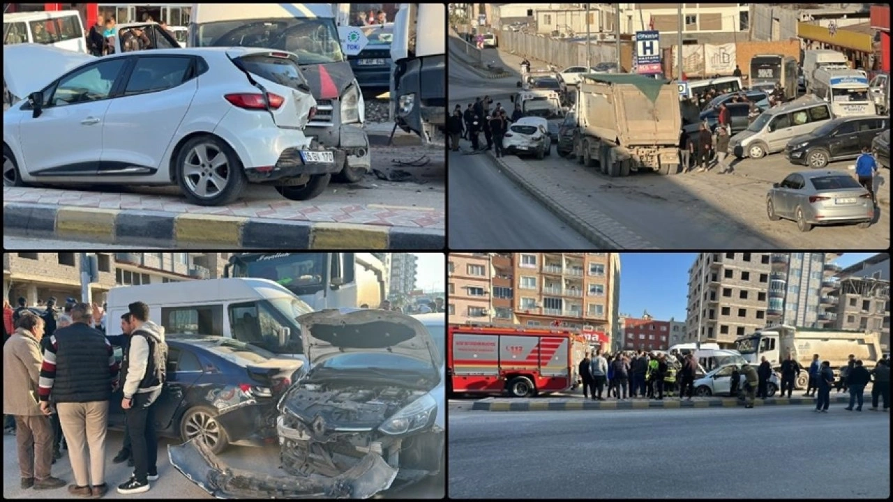 Görüntüde, hafriyat kamyonun duramayarak 5 araca arkadan çarpması yer aldı.
