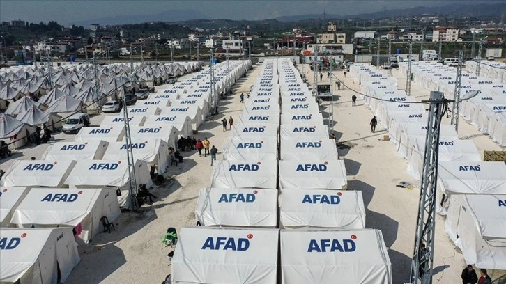 Hatay'ın Defne ilçesindeki AFAD ve Kocaeli Büyükşehir Belediyesi işbirliğiyle kurulan yaklaşık 500 çadırda depremzedelere duşa kadar her türlü imkan sunularak barındırılıyor.