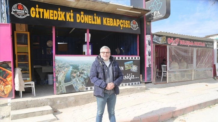 Prefabrik işletmesine "Gitmedik ki dönelim" ismini yazdıran Et, "Depremzedelere umut olsun diye 'gitmedik ki dönelim' adını koyduğumuz küçük bir kebap işletmesi kurduk. Bu şekilde çalışıyor, ekmeğimizi kazanıyoruz. Bütün dünyamızı bu kulübeye sığdırdık." dedi.