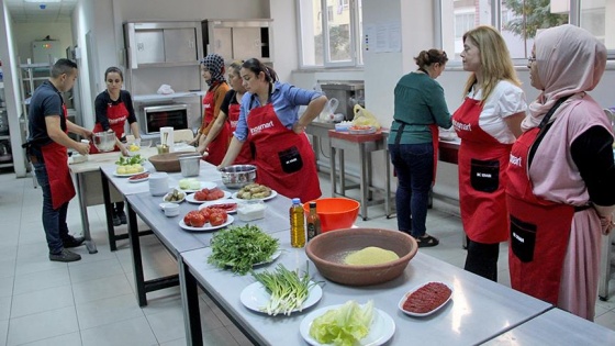 Kursta sağlıklı ve dengeli beslenmeye yönelik de bilgilendirmeler yaptıklarını aktaran Erkan, "Burada biz hijyenden doğru bıçak kullanımına, gıda zehirlenmesinin önlenmesinden sebzenin ve etin doğru pişirilmesine kadar geniş bir alanda eğitim veriyoruz. Yani mutfakla ilgili A’dan Z’ye kadar her şeyin temelini gösteriyoruz." diye konuştu.