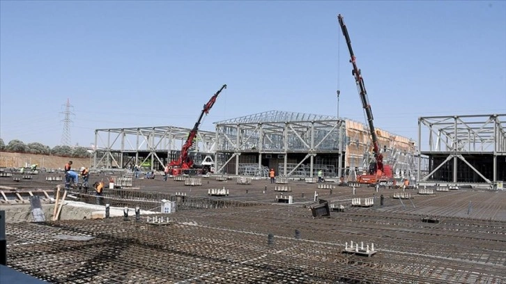 6 Şubat'taki depremlerde büyük hasar gören kentte, merkez Antakya ilçesi Gülderen Mahallesi'ndeki Hatay Eğitim Araştırma Hastanesi inşaatında çalışmalar sürüyor.