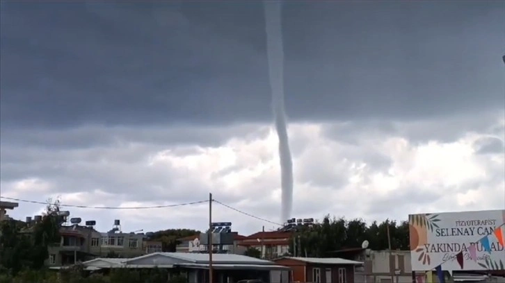 Bir süre etkili olan ve ilçenin farklı noktalarından görülen hortum, kamerayla görüntülendi.