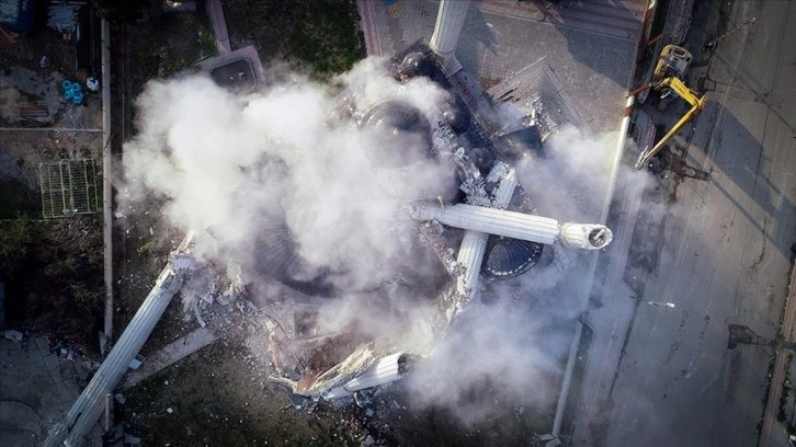 Güvenlik güçlerince alınan önlemin ardından ekskavatör operatörünün darbelerle bir bölümüne gedik açtığı minareler, caminin kubbelerinin üstüne doğru kontrollü olarak devrildi.